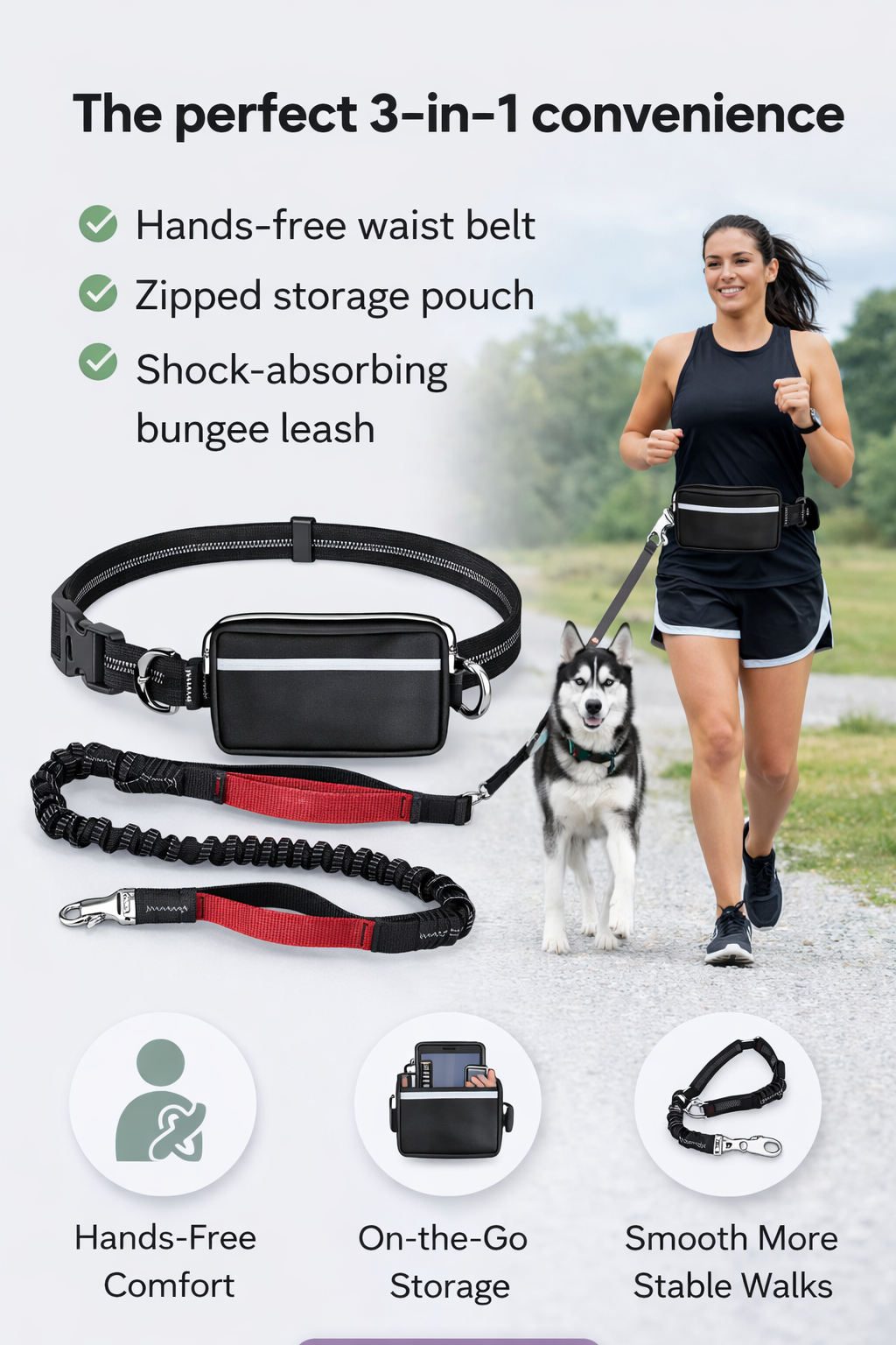 Hands Free Dog Retractable Elastic Leash Reflective Towing Rope