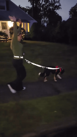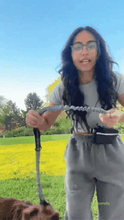 The shock-absorbing bungee can handle pulling force up to 150 lbs, making it perfect for strong, energetic dogs.