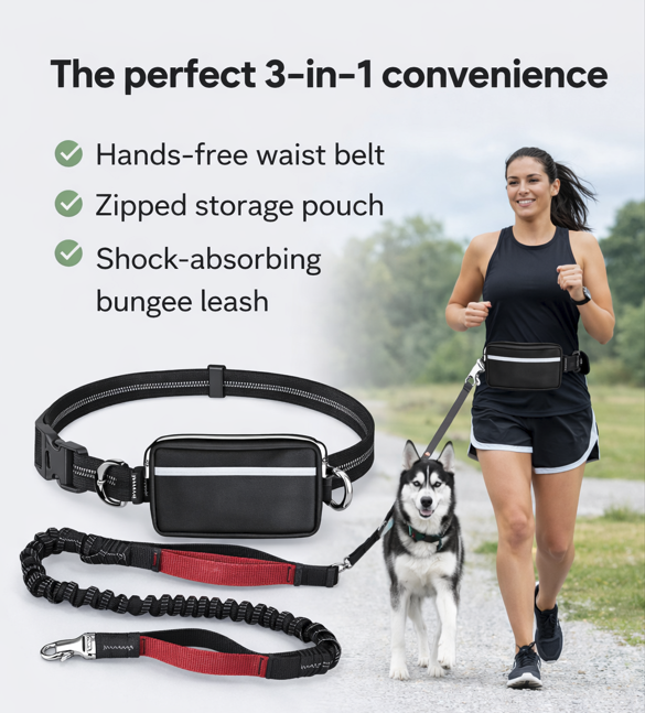 The elastic bungee absorbs sudden pulls, keeping your pace smooth and comfortable.